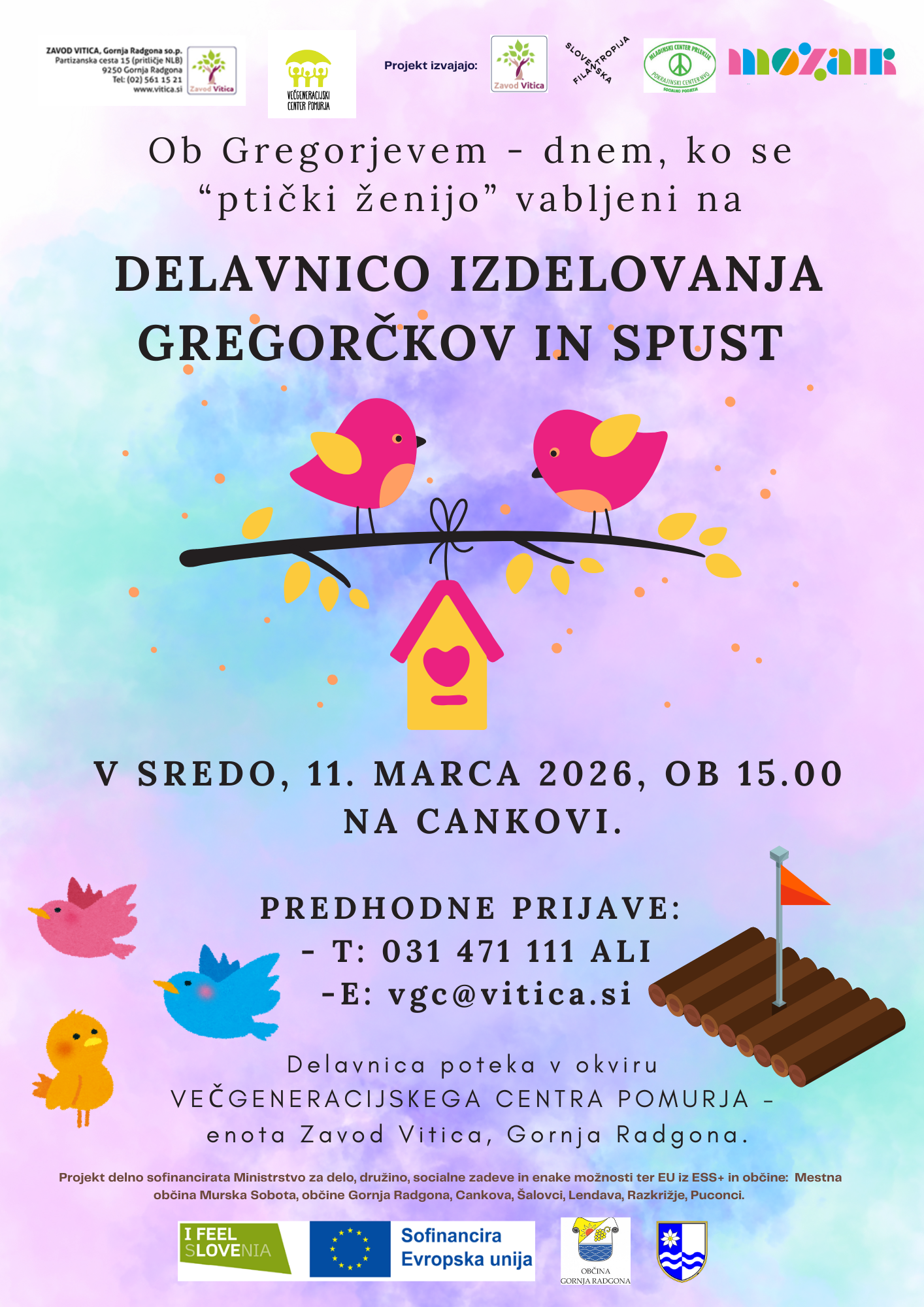 Ob Gregorjevem – dnevu, ko se »ptički ženijo«, vas vabimo na ustvarjalno delavnico izdelovanja gregorčkov. Skupaj bomo izdelali tradicionalne gregorčke in jih nato tudi spustili po vodi.