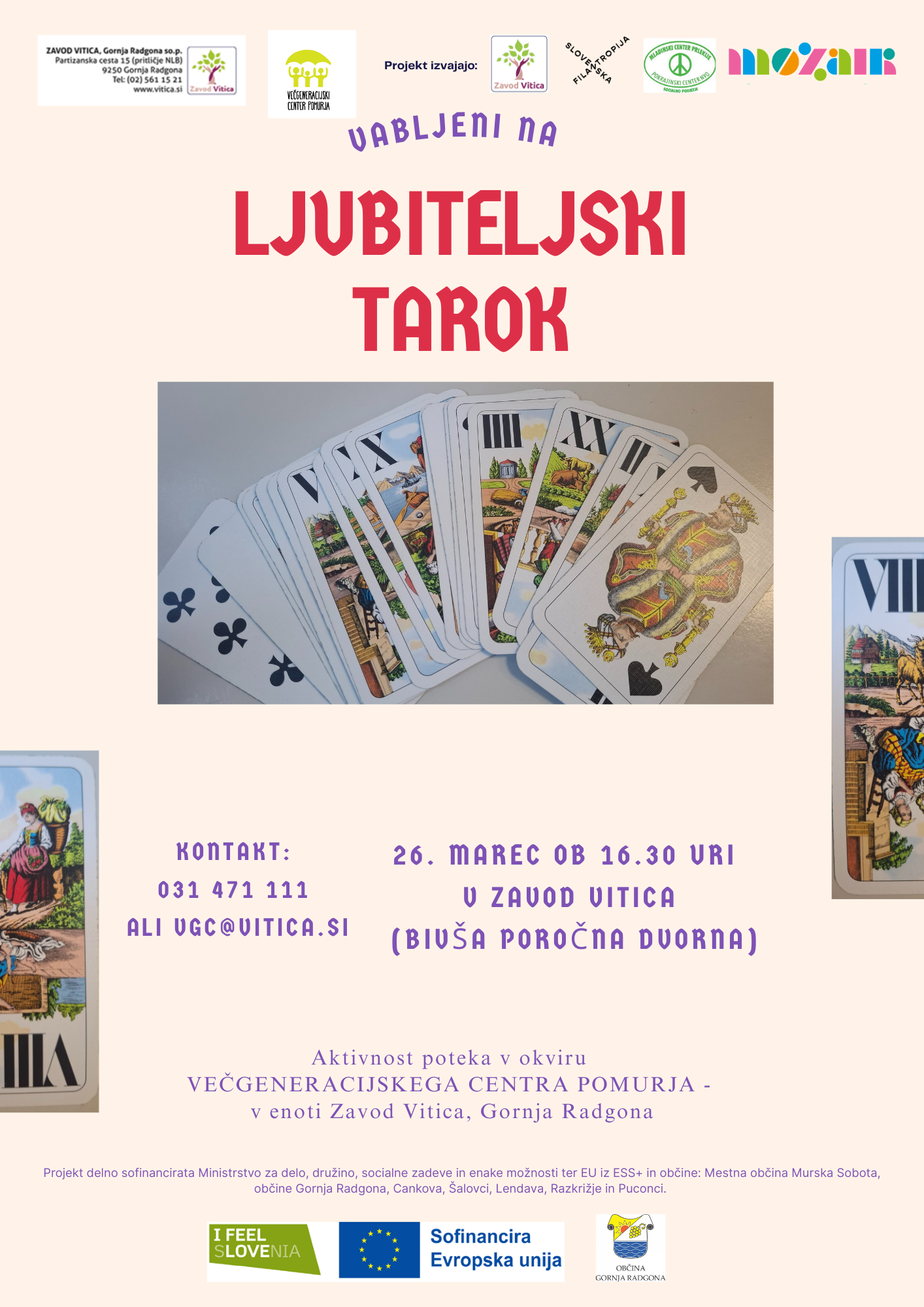 Aktivnost poteka v okviru Večgeneracijskega centra Pomurja – v enoti Zavod Vitica, Gornja Radgona.